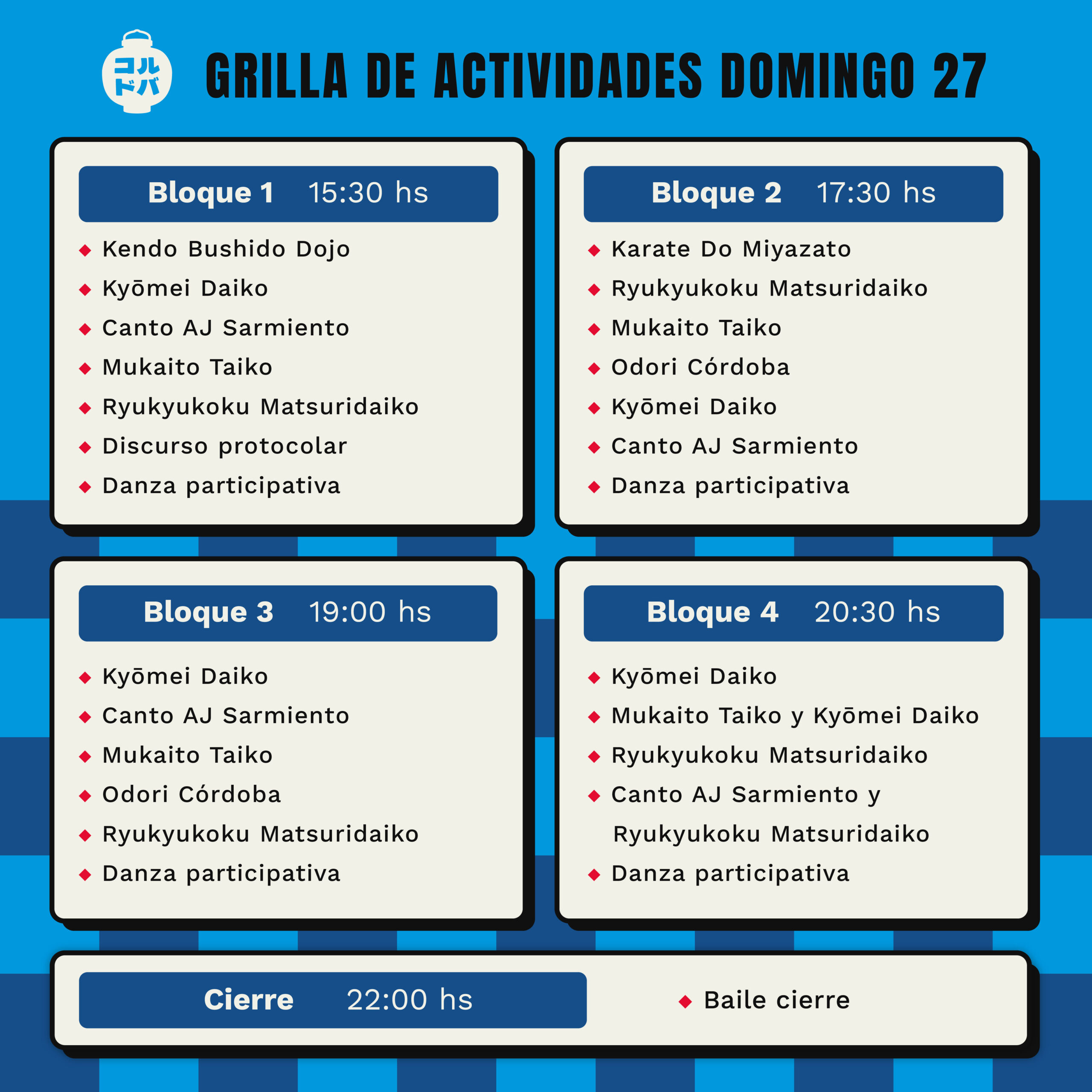 - Lugar: Predio de la Asociación Japonesa de Córdoba – Av. Celso Barrios 3500.