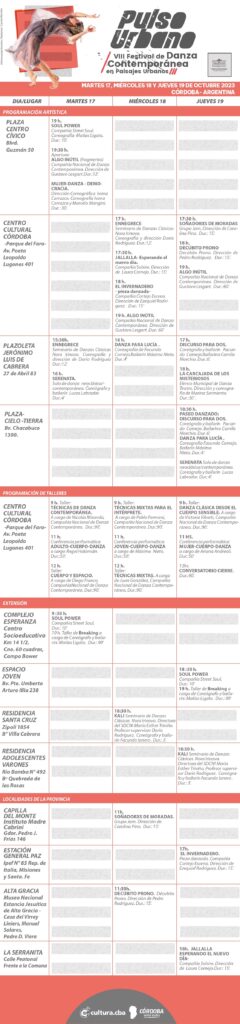 A continuación, la grilla completa del VIII Festival Pulso Urbano.