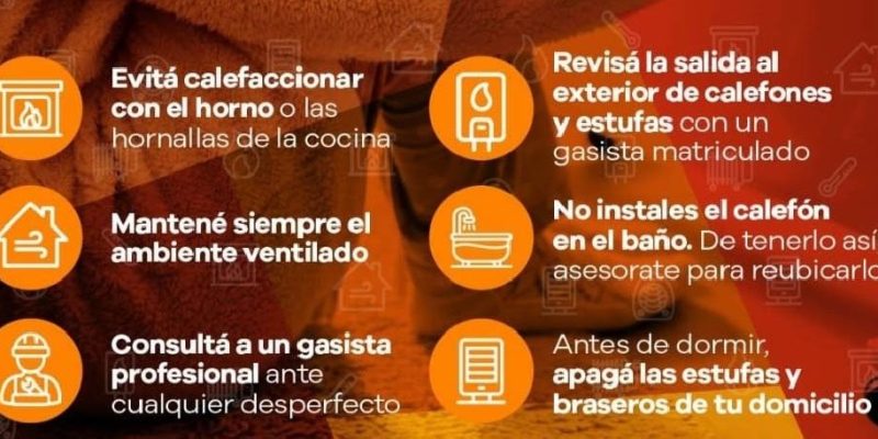 Al respecto, se recomienda controlar la instalación y el buen funcionamiento de calefones, termotanques, calderas, estufas, braseros, salamandras, cocinas, anafes, calentadores y hornos a gas o leña, entre otro tipo de artefactos utilizados al efecto de elevar la temperatura.