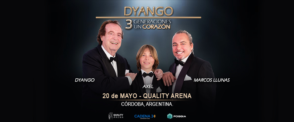 Para sorpresa de todos sus fanáticos, Dyango regresa al país, esta vez junto a su hijo Marcos Llunas y su nieto Axel. Este show se enmarca en la gira “3 Generaciones, un Corazón”, que por primera vez tendrá a esta familia de talentosos artistas compartiendo sobre el escenario, el próximo 20 de mayo en Quality Arena.