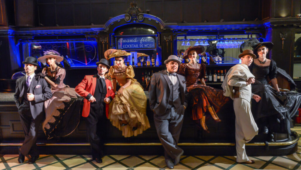 El show repasa la Historia del Tango con diferentes parejas de baile y cantantes que no solo permanecen en el escenario sino que recorren todo el salón en diferentes números del show.