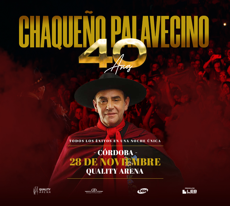 Este 28 de noviembre, el chaqueño Palavecino llega al Quality Arena en Córdoba para festejar los 40 años de una larga carrera llena de éxitos y logros, donde canciones como “Amor Salvaje”, “La Ley y la Trampa”, “Don Amancio”, entre tantos otros grandes éxitos, ya forman parte del cancionero popular argentino.