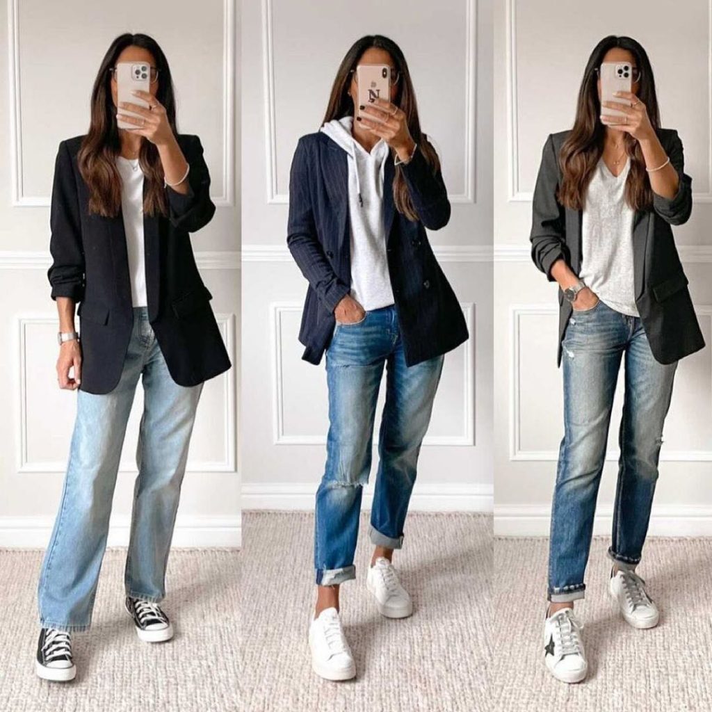 No hace frío todavía, pero tampoco está demasiado caluroso. Por eso, en estos días otoñales, el mejor recurso a la hora de armar un buen look es recurrir al blazer. Si tenés uno de color, mejor. Llevalo con tus jeans preferidos.