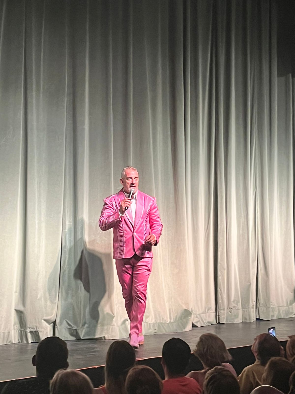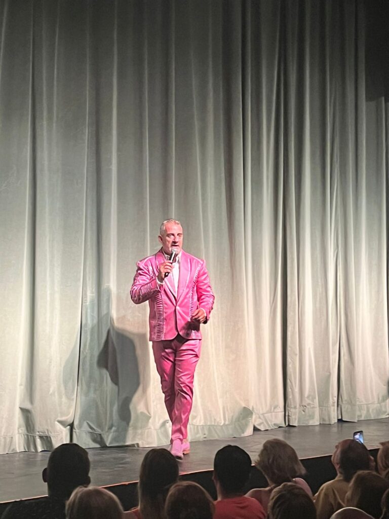 Omar Suarez, maestro de ceremonia, es el encargado de entablar conversaciones con el público y el resto del elenco a través de diferentes diálogos e historias graciosas que provocan un desopilante ida y vuelta.