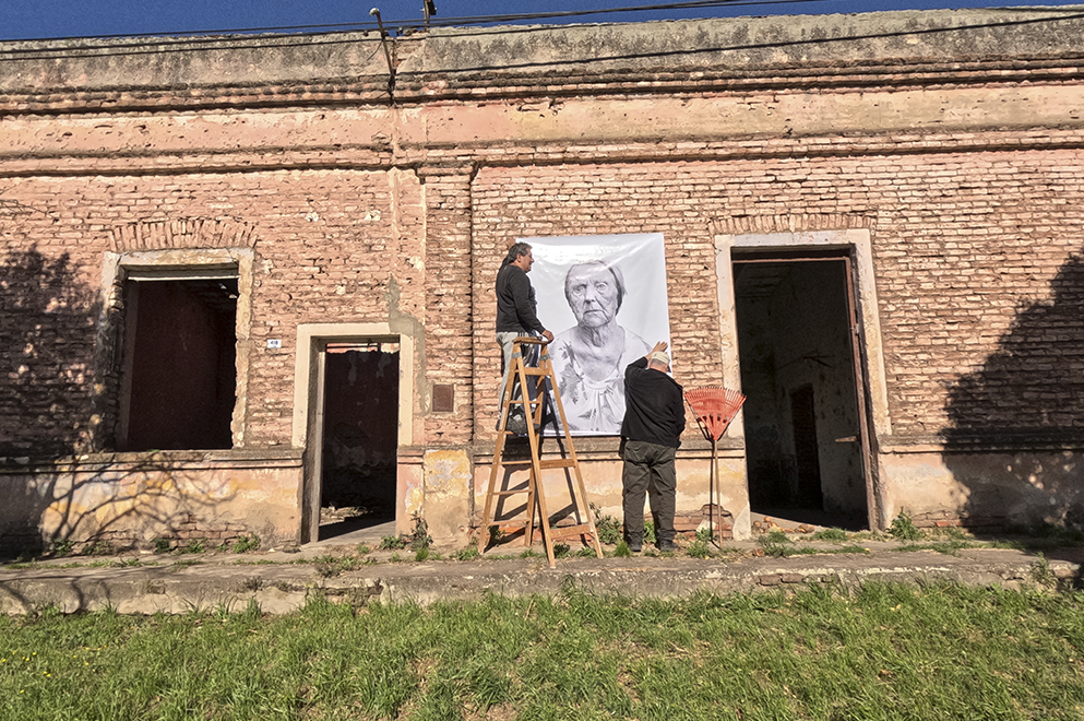 El proyecto consiste en la instalación de gigantografías que, montadas en frentes de casas, medianeras y espacios comunes, utilizan los muros del municipio para narrar la historia de sus habitantes.