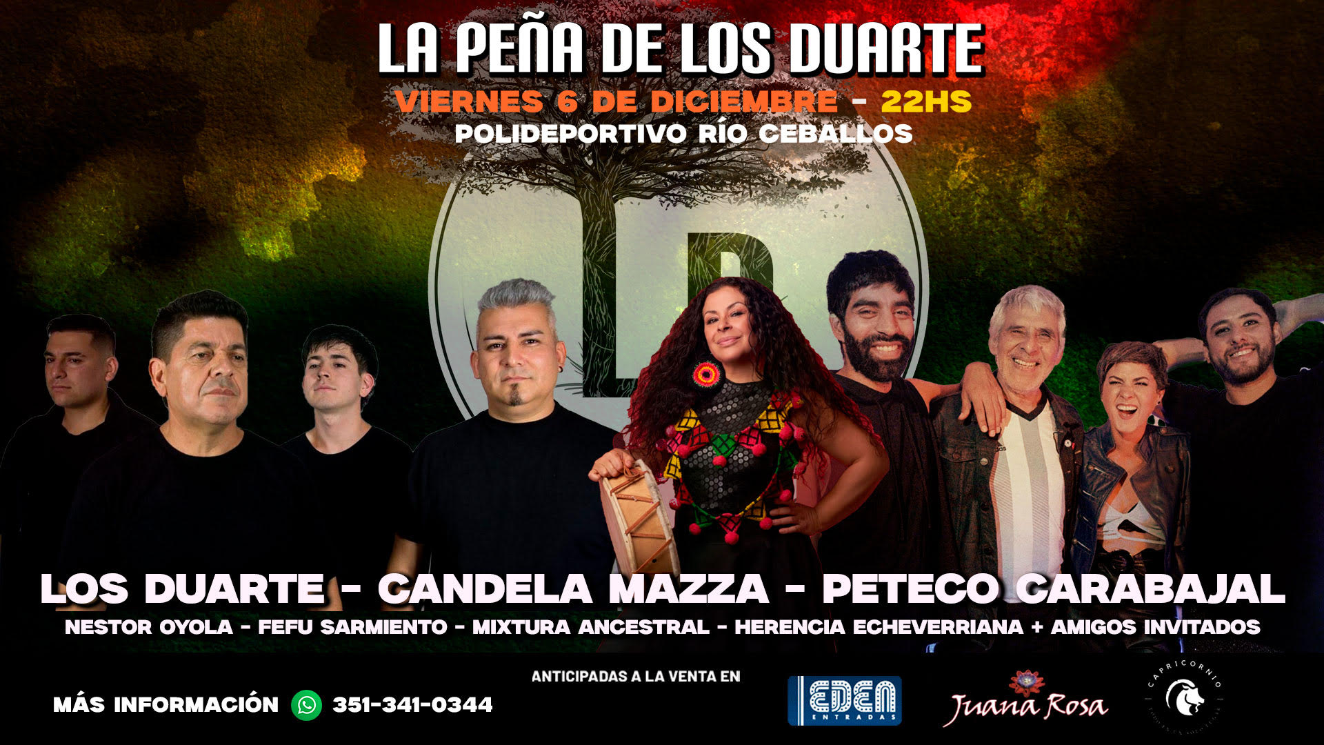 La Peña de Los Duarte llega a Río Ceballos para una noche inolvidable de folklore y tradición. Este evento, ya tradicional en el calendario de peñas, promete una velada con lo mejor de la música popular argentina. Además de la actuación principal de Los Duarte, contará con la presencia de destacados artistas del género: Peteco Carabajal, Candela Mazza, Néstor Oyola, Fefu Sarmiento, Mixtura Ansestral, Herencia Echeverriana y amigos invitados. Para complementar la experiencia, habrá buffet con bebidas y comidas típicas de nuestro país.