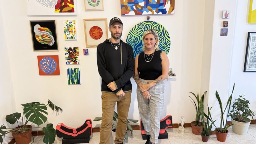 Ver sus obras en la tribuna del Estadio Kempes o en los puentes de la ciudad es una experiencia impactante; es el arte dialogando con la escala monumental. Pero lo que realmente fascina es el «detrás de escena». En un gesto de total apertura, Lu y El Lolo han decidido prescindir de las galerías tradicionales para abrir las puertas de su propio refugio.