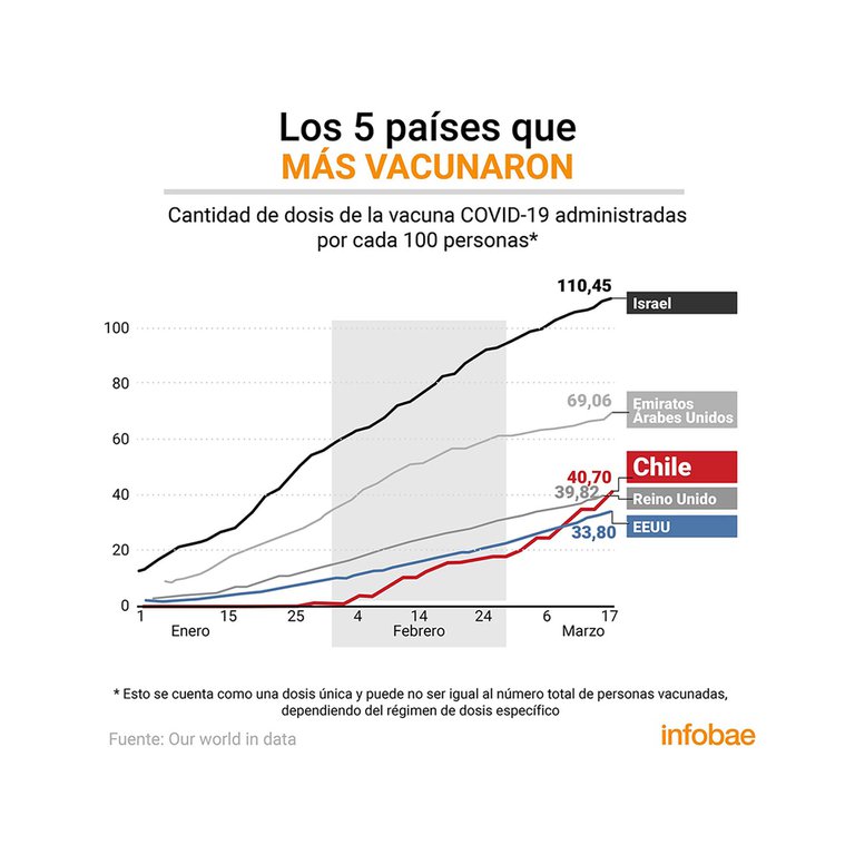 El país sudamericano se ha vuelto el campeón latinoamericano en la vacunación contra COVID-19 y está entre las primeras cinco naciones en el mundo que lideran la inmunización contra el virus.