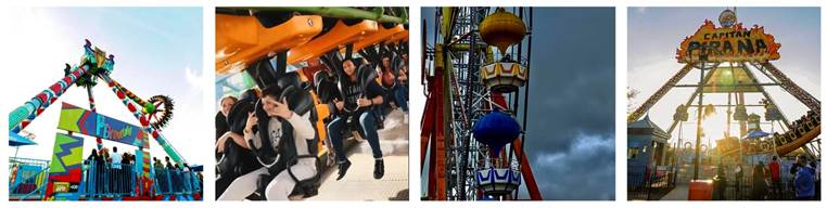 Y como siempre, se podrá disfrutar de los sensacionales juegos que ya son todo un clásico dentro del Parque: la Montaña Rusa Boomerang, la Montaña Rusa Desafío, la Montaña Rusa El Vigía, Pendulum, las Sillas Voladoras, el Baile de las Tazas, Samba, la Vuelta al Mundo y muchos más juegos.