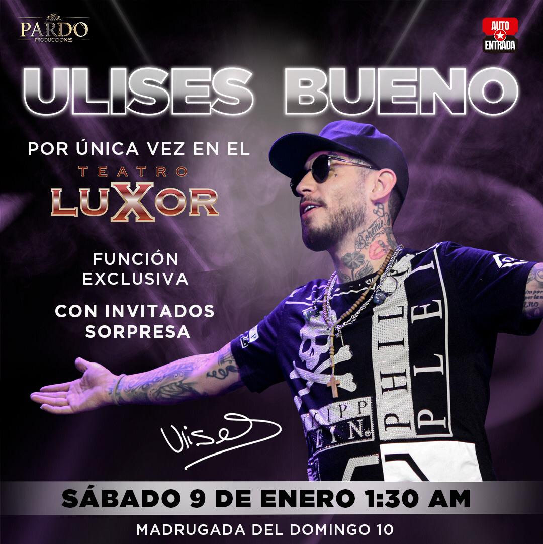 A pedido del exitoso cantante cuartetero y tras dos funciones agotadas en el Teatro Holiday, Ulises Bueno presentará su Show Intimo en el gran Teatro Luxor.