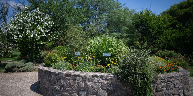 El cantero de medicinales presenta un gran aromito que en agosto florece brindando un aroma dulce y atractivo a las abejas, aunque también sus hojas se han empleado como cicatrizantes en la medicina de campo. A la sombra del aromito crecen el matico, usado para la gastritis, el ajenjo herbáceo europea muy empleada como hepático o el arbusto nativo conocido como Cangorosa, de aspecto similar al muérdago.